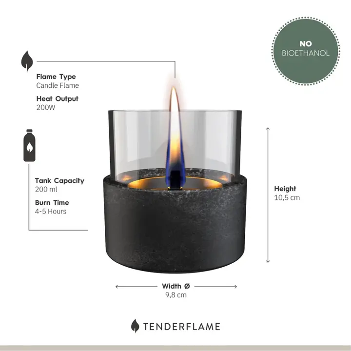 Met de tafelhaarden van Tenderflame geniet je altijd van bewegende vlammen. Zet de haard neer ter decoratie of tafel-aankleding en geniet van een fijne sfeer zonder roet en geur. Het bijzondere aan deze lijn terras verwarmers is dat het 100% veilig is. Wanneer je de brandstof óver de vlam heen bijvult, krijg je geen steekvlam. De levendige vlam, die veel groter is dan die van een gewone kaars, ontstaat dankzij de variërende lonten van 2 cm tot 5 cm. Neem eens een kijkje in het ruime tafelhaarden aanbod en vind een tafelbrander waar jij je heel het jaar aan warm houdt!