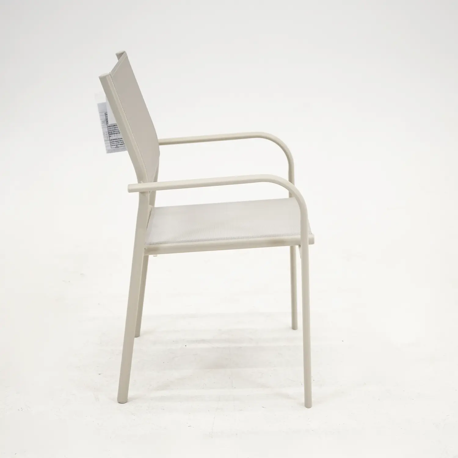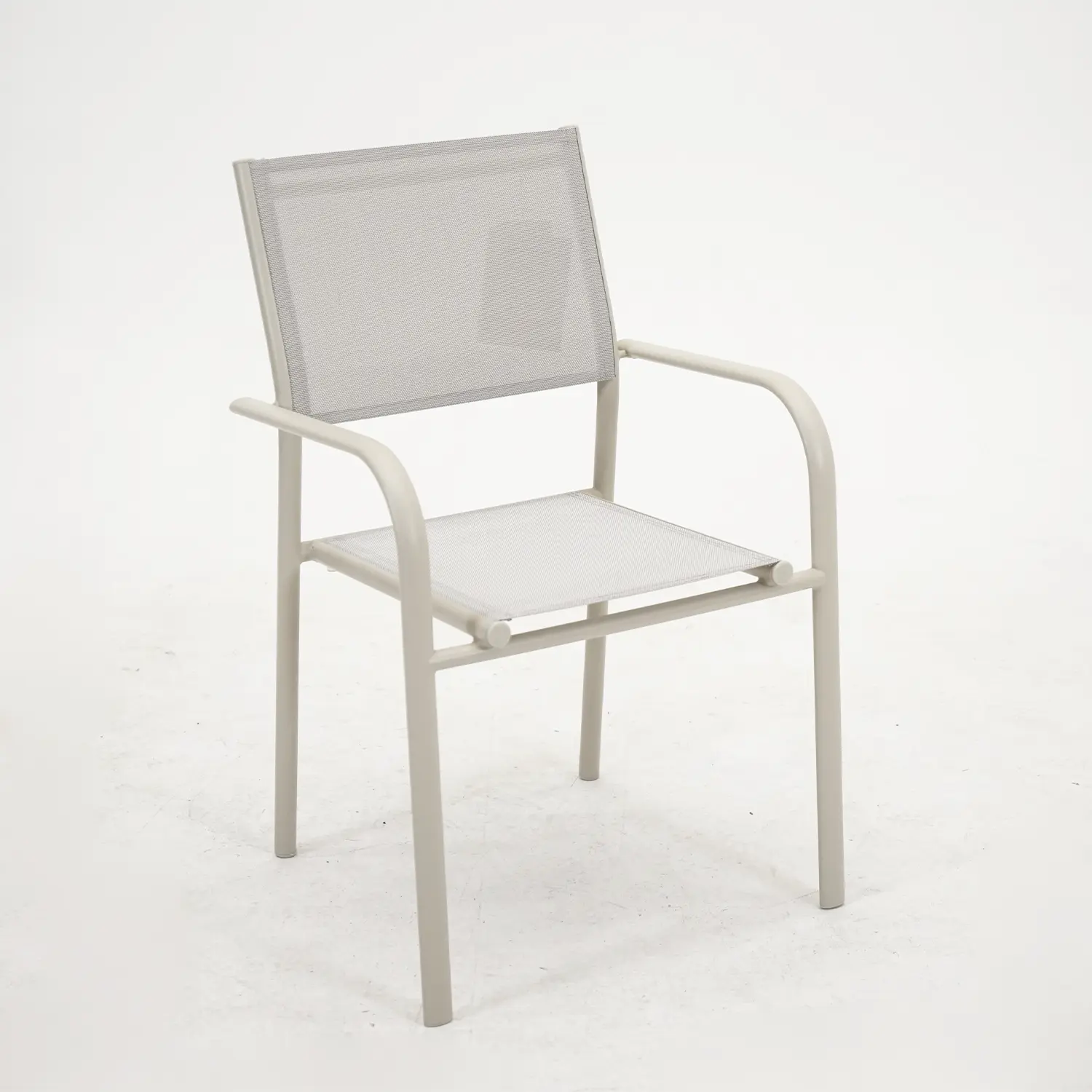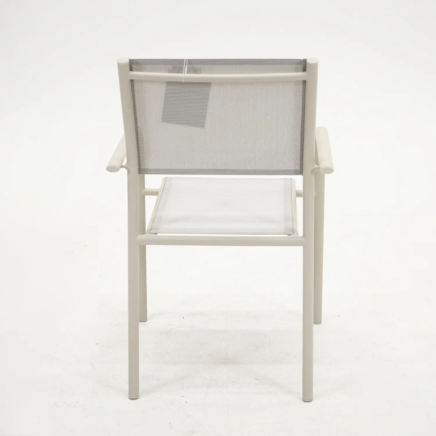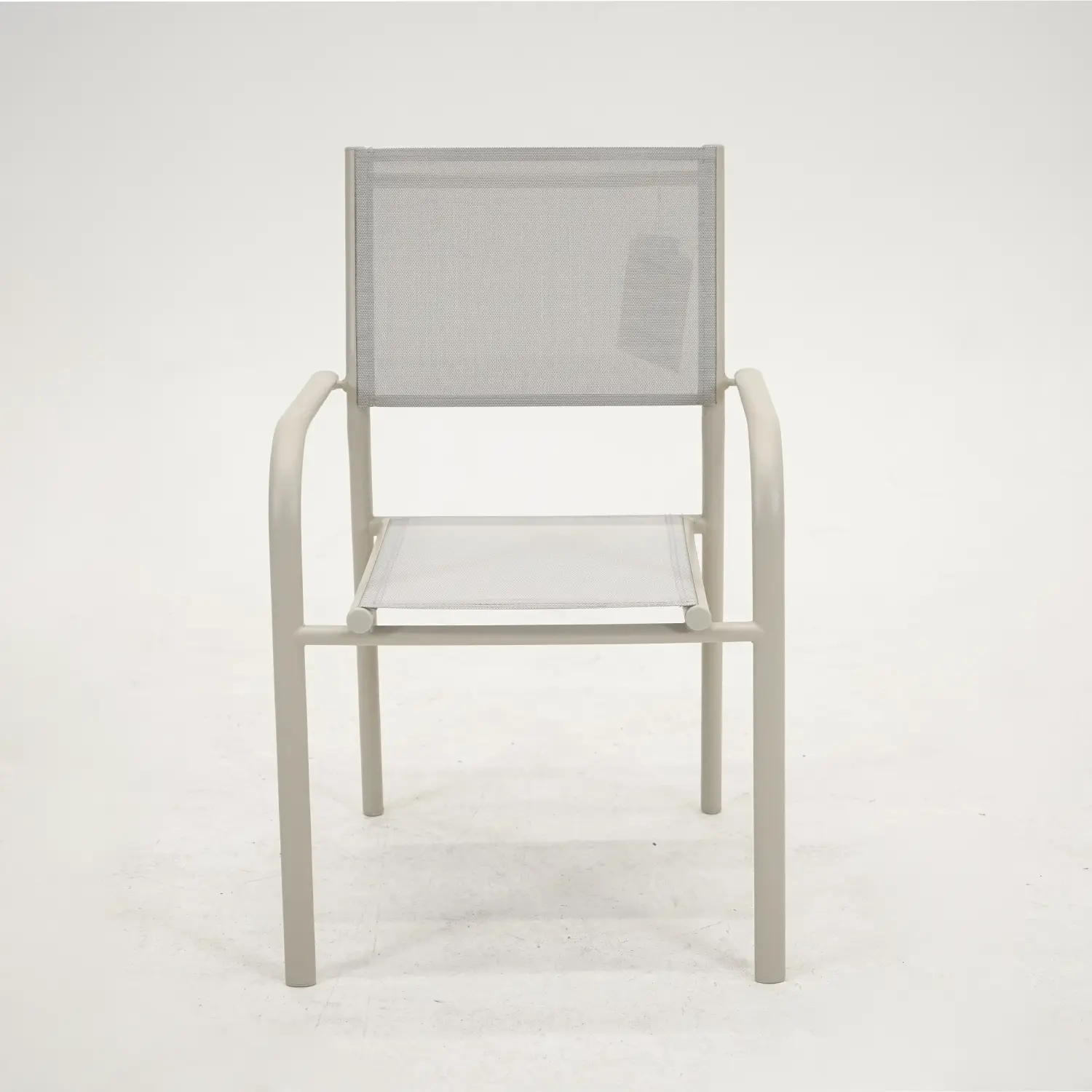 Het frame van deze stoel bestaat volledig uit gepoedercoat aluminium. Gepoedercoat aluminium is een materiaal dat sterk is, maar ook licht van gewicht is. Gepoedercoat aluminium is verder ook een onderhoudsvriendelijk en ook weerbestendig en dus duurzaam materiaal. Door de poedercoating zit er dus een extra beschermlaagje op het frame, dat extra beschermt tegen krassen. De zitting en de rugleuning van de stoel zijn gemaakt van textileen. Textileen is een polyester dat sterk, onderhoudsvriendelijk, waterafstotend, sneldrogend, vuilafstotend, kleurvast, uv-bestendig, vorstbestendig en weerbestendig is. Je kunt de stoel dus in principe het gehele jaar door buiten laten staan, maar mocht je de levensduur van je stoel toch willen verlengen raden wij aan om deze stoel tijdens de wintermaanden af te dekken met een tuinmeubelhoes. Of om deze tijdens de wintermaanden ergens droog op te bergen.