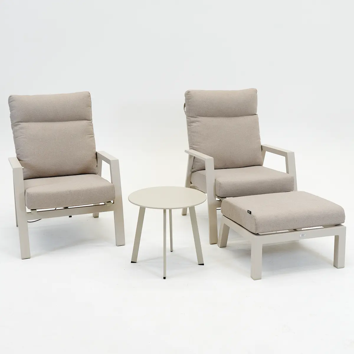 Loungeset Ohio Crème met 2 down town voetenbankjes en tafeltje