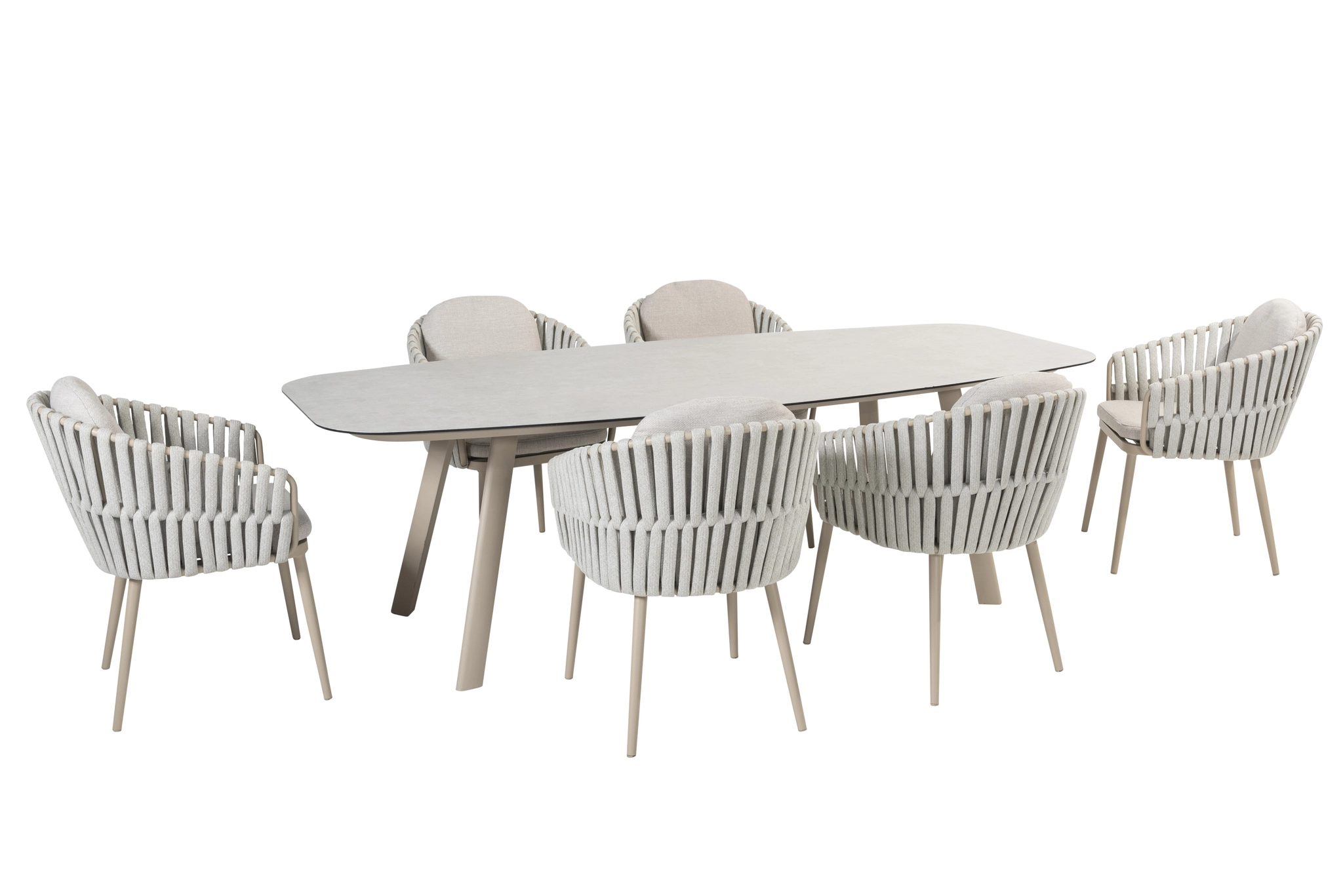 Manolo 240x103x75 cm met 6x Eva dining stoel latte