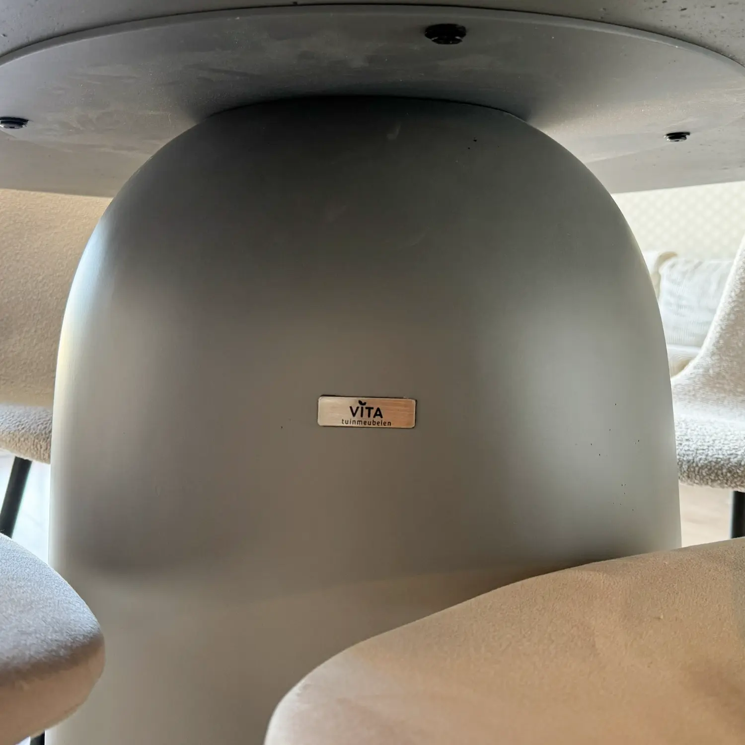 Ben jij op zoek naar een stijlvolle en moderne tafel om van lange zomeravonden te genieten of naar een mooie tafel voor in de eetkamer? Dan is de Tafel Cesano Ø120cm van het merk Vita Tuinmeubelen misschien wel de perfecte toevoeging voor in jouw initerieur. Deze tafel beschikt over een unieke ronde tafelpoot in combinatie met een rond tafelblad, waardoor hij een stijlvolle en moderne uitstraling heeft én gelijk in het oog springt. Daarbij zorgt de grijze kleur ervoor dat de tafel geschikt is voor elk interieur én met veel verschillende diningstoelen gecombineerd kan worden. Ook door zijn minimalistische uitstraling past deze tafel goed in ieder interieur of dat nou binnen of buiten is. Door de diameter van 120 cm is deze tafel geschikt voor vier personen.